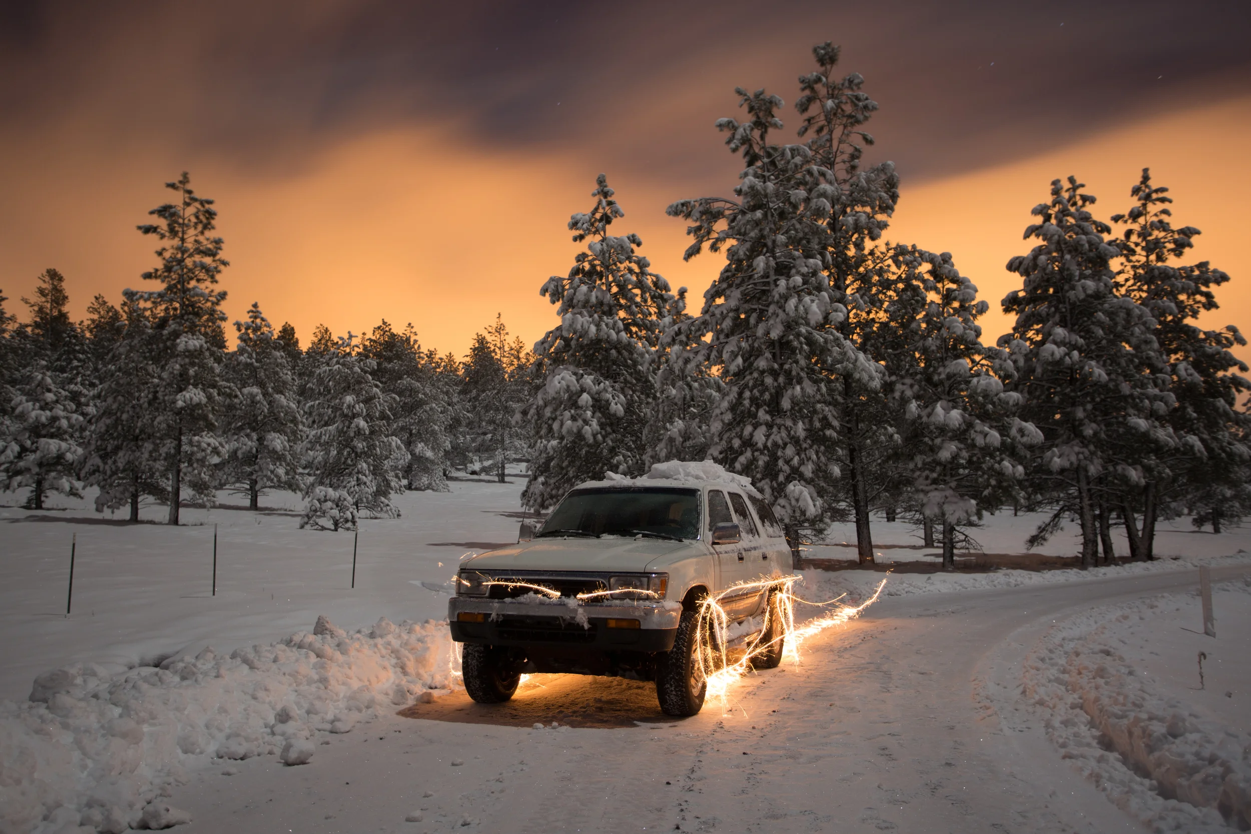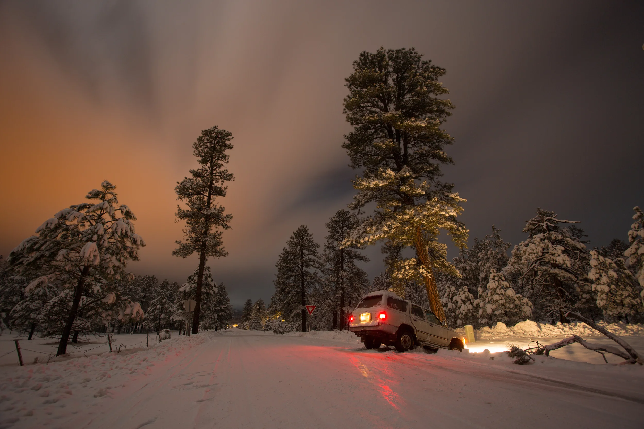 Cruising around Shultz road shooting night photos with some friends. The ice got the best of us and we slid into a ditch! Pushed that bad boy out in no time flat.
